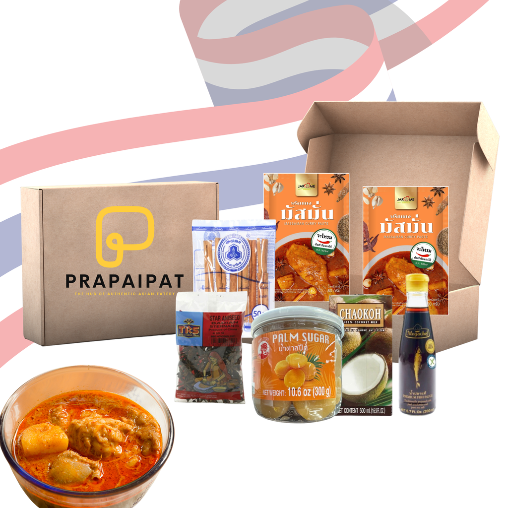 Erleben Sie die Aromen der thailändischen Küche mit unserem Massaman Curry Starter-Set! Dieses Set enthält alles, was Sie für ein köstliches Curry benötigen – von cremiger Kokosmilch bis zu aromatischen Gewürzen.